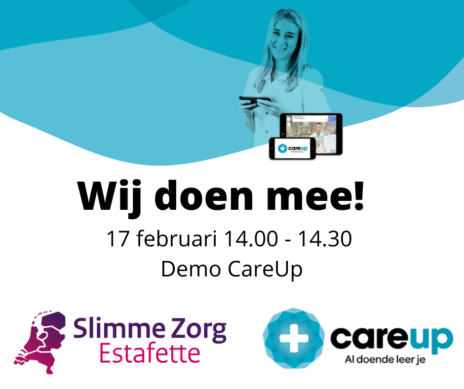 CareUp doet mee aan Slimme Zorgestafette 2022 “Piloten hebben een flightsimulator, verpleegkundigen en andere care-medewerkers gebruiken vanaf nu CareUp!’’ CareUp is hét online leerprogramma waarmee