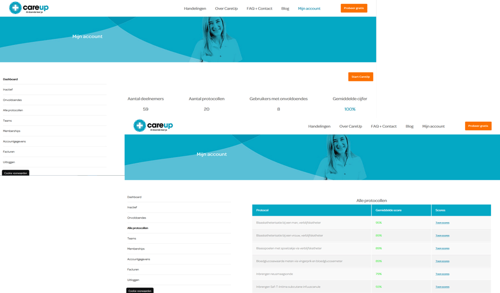 Met de CareUp Portal worden resultaten en certificaten op een eenvoudige manier gemonitord. Zo heb je als zorgorganisatie duidelijk inzichtelijk welke zorgprofessionals de verschillende verpleegtechnische handelingen beheersen.